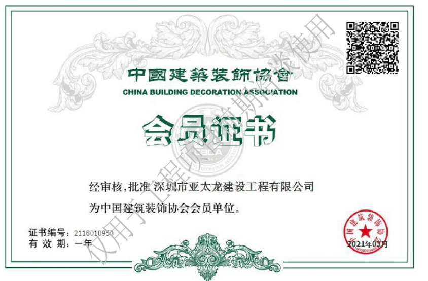 中国建筑装饰协会会员证书