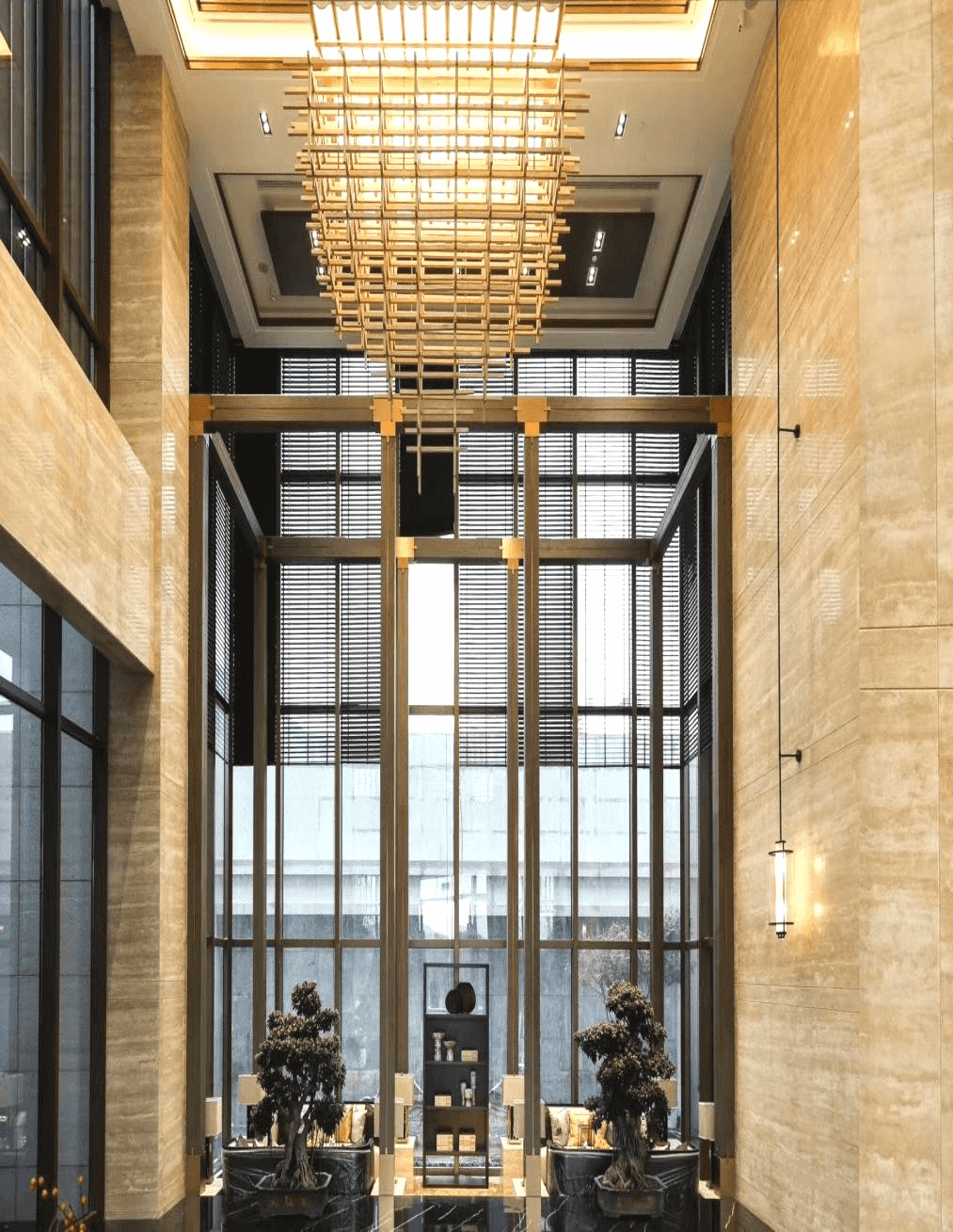 为了展示故里生活的美好记忆,设计将“里弄文化”放大与深化,对于园区重要景观节点进行传统文化的植入,并以“门、 堂 、巷、院、厅”为空间序列来展开,其中包括“天井”、“弄”等多元空间形式;同时,园区用各种建筑材质、树种等元素构建细腻的景观肌理,将传统文化衍生而来的符号进行抽象转换,用以打造富有现代审美意味的景观细节。